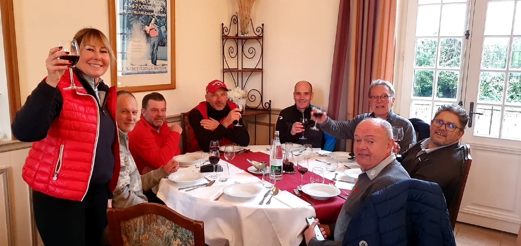27 novembre 2021. Il en fallait du courage pour jouer ce matin ! un temps à ne pas mettre le nez dehors 🥶 Sauf pour la team 2, encouragée par son capitaine et qui rentre victorieuse ce soir . 5 matchs sur 6 gagnés. A noter que nous avons été reçus comme des rois ! Je vous invite à aller découvrir ce parcours et son corps de ferme très spacieux avec une décoration complètement décalée mais tellement reposante après l'effort. Cafe, chocolat et gâteau, tout ça fait maison étaient offerts en milieu du parcours par la Capitaine de l'équipe, d'une incroyable gentillesse à l'image de son équipe. Une anecdote qui vous fera sourire Mesdames, mes adversaires relevaient mes tees après mes mises en jeu ! Il y a du niveau dans la manière de se comporter 😉